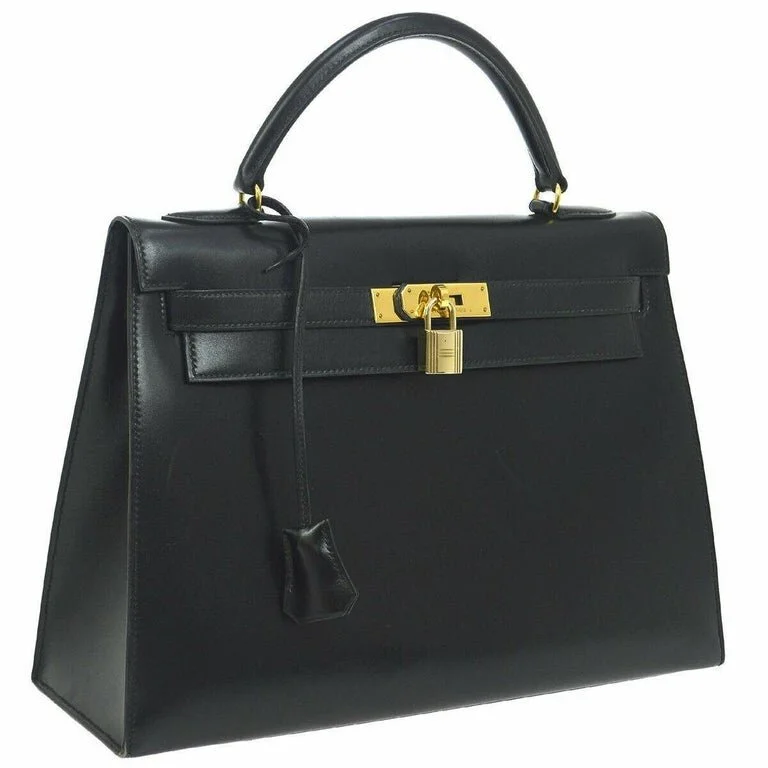 Hermes Vintage Kelly Handbag Noir Box Calf with Gold Hardware 32, 1991