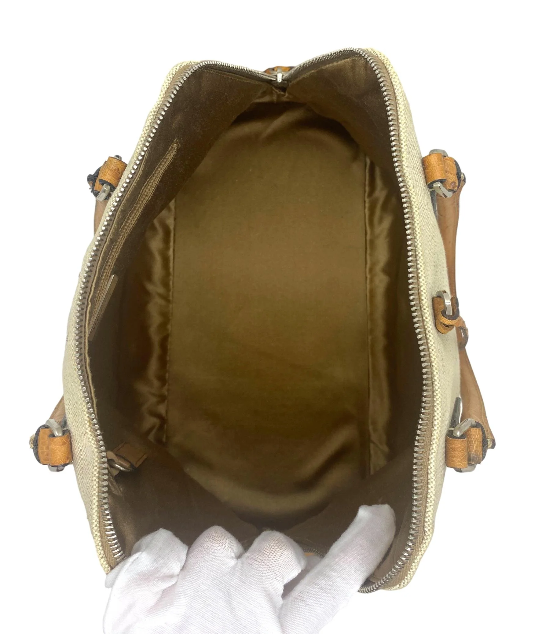 Material(s): Natural canvas, Ostrich Silk lining and Brass Hardware.