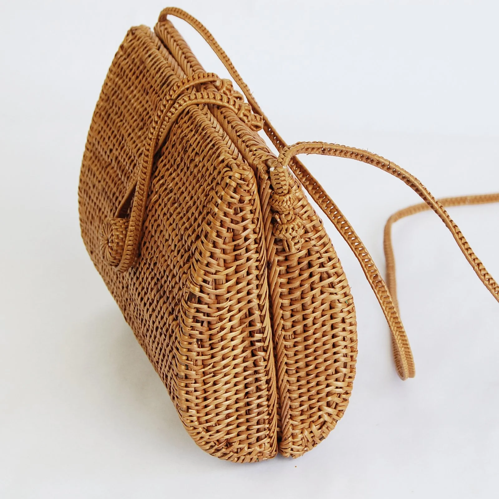 What can I say! It's as cute as a button. Everything about it is unique and sassy...shape, button, lining, pockets and long shoulder strap! Fabric lining varies in color depending on what is bought in the market place.
