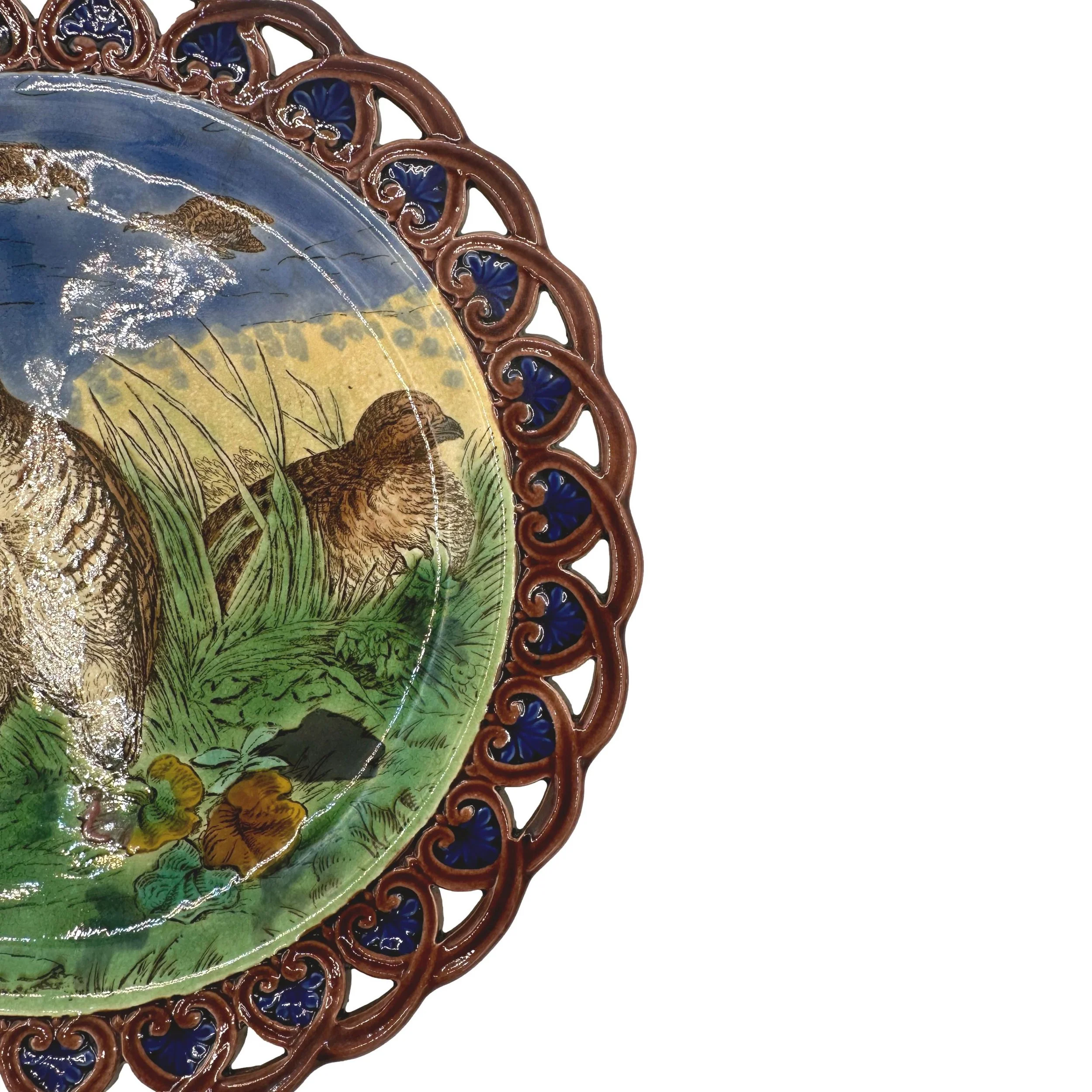 A Wedgwood Majolica Quails Game Cabinet Plate, Reticulated, English, Ca. 1877
