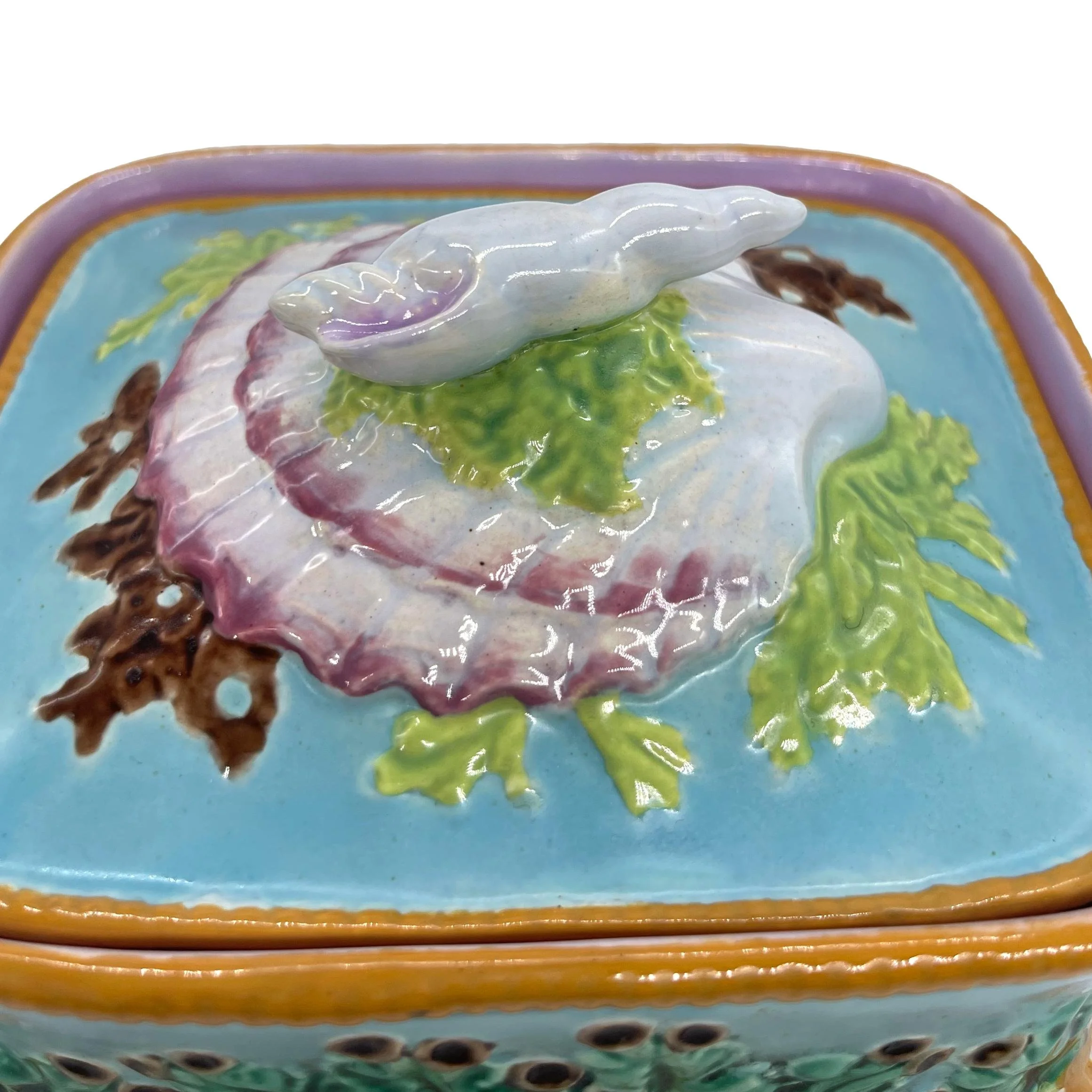 George Jones Majolica Sardine Box with Shells and Seaweed, English, ca. 1867