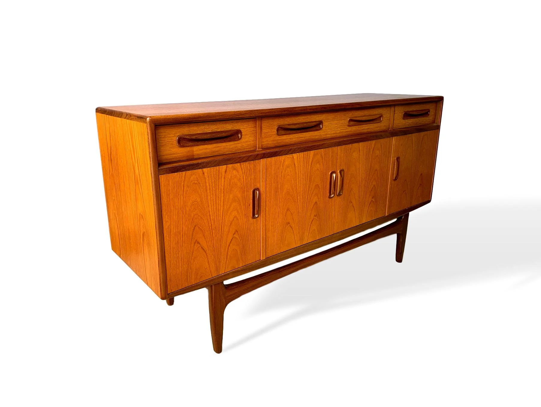 Mid-Century Modern Sideboard Cabinet, Teak, English, ca. 1965. This piece is made to the highest quality standards. Lovely color and size.
