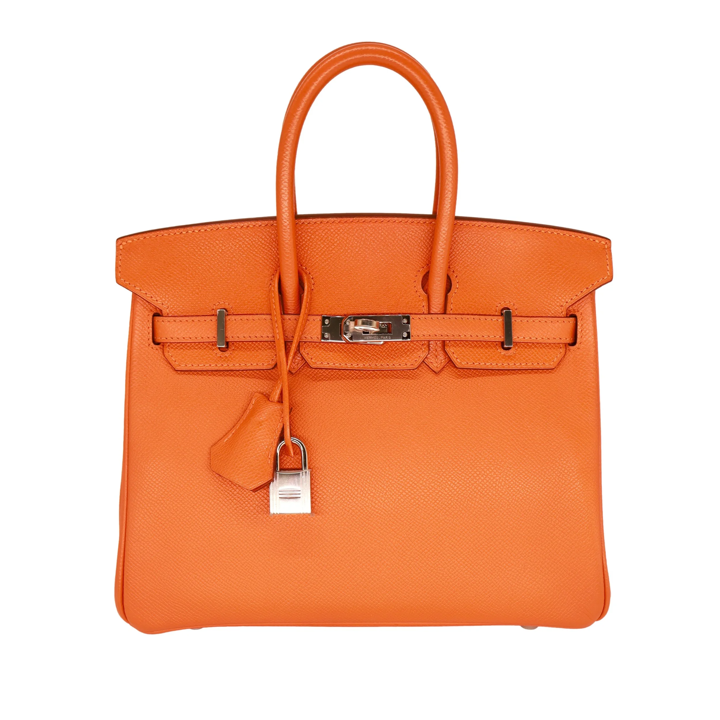 Hermès Orange H Epsom Leather 25cm Birkin Bag with Palladium Hardware, 2007. Originally introduced in the Late 20th Century, the Birkin bag was created during a chance encounter between two iconic figures, actress Jane Birkin and Hermès chairman Jean-Louis Dumas. On a flight from Paris to London, Birkins' tote bag fell from the overhead causing much frustration on her part that Dumas took notice to. By the end of the flight, the two had brainstormed on a flight sickness bag the perfect accessory for the modern day woman and mother, to what we now know as the holy grail of handbags, the Birkin. Since it's creation, the Birkin has gained world recognition for its exclusivity and became the number one collectible investment for the last consecutive five years.