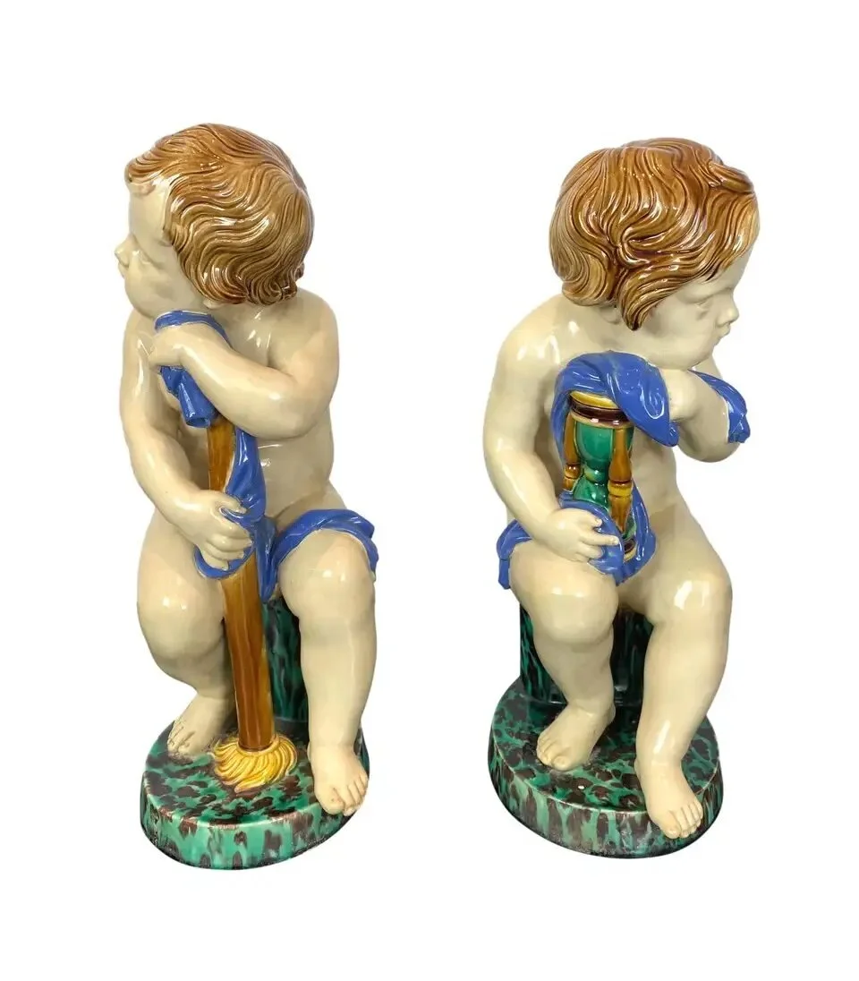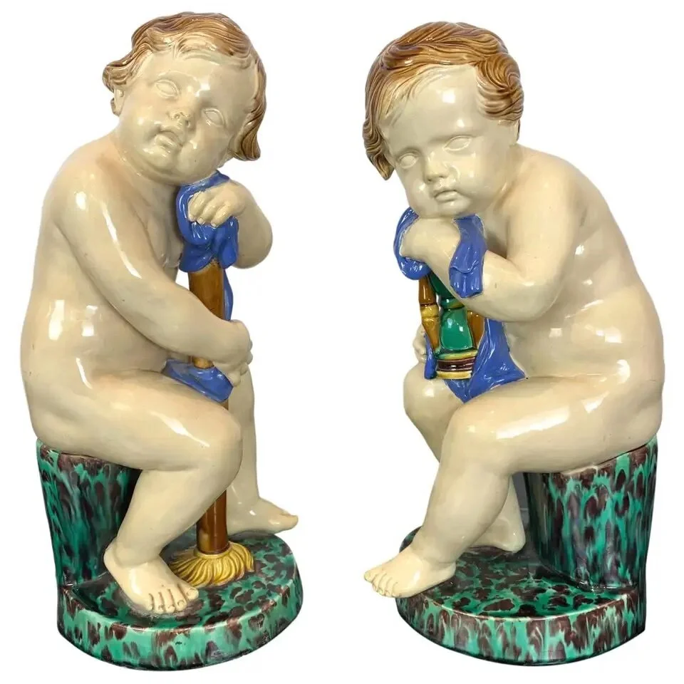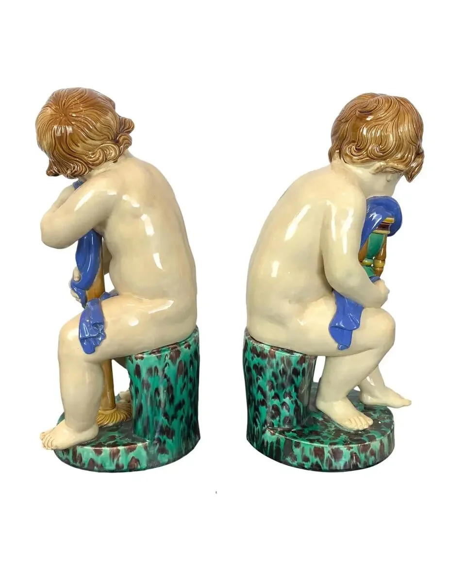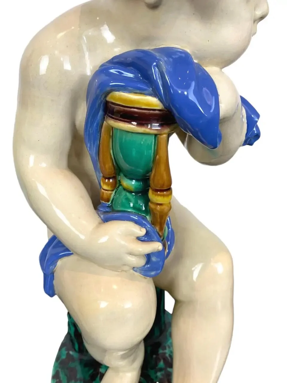 A Sarreguemines Majolica Smoking Stand, Drunk Street Musician and Dog, ca. 1880